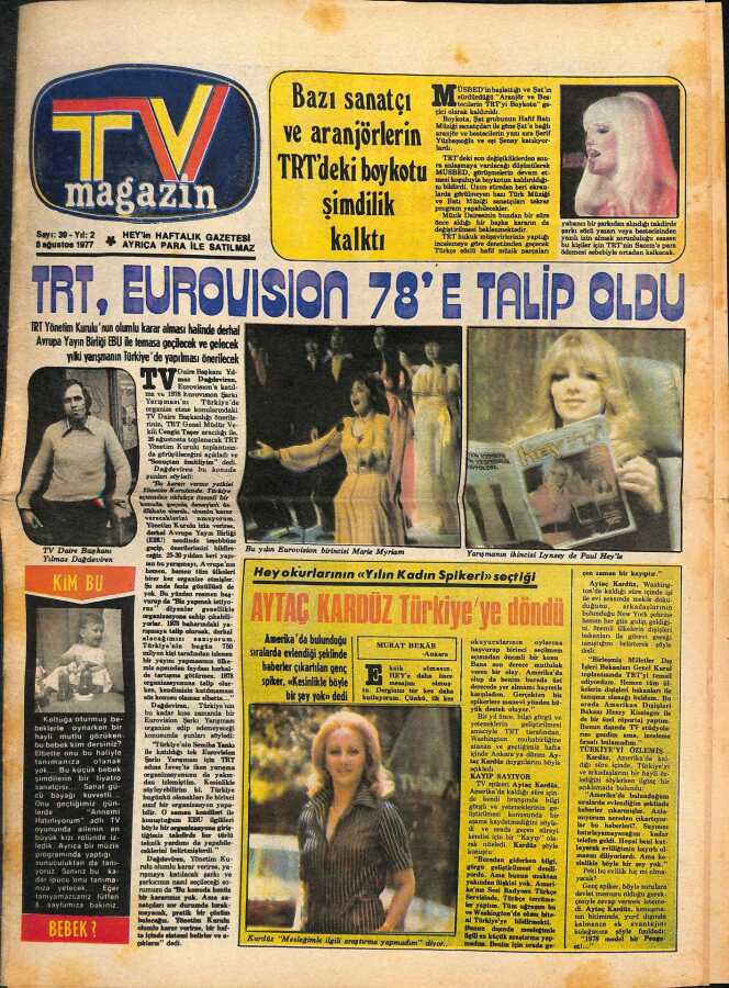 Hey TV Magazin Dergisi Sayı 39 8 Ağustos 1977 - Ümit Aktan Bekarlığa Veda Ediyor, Mehmet Ali Erbil Kadrolu Sanatçı Oldu NDR82319