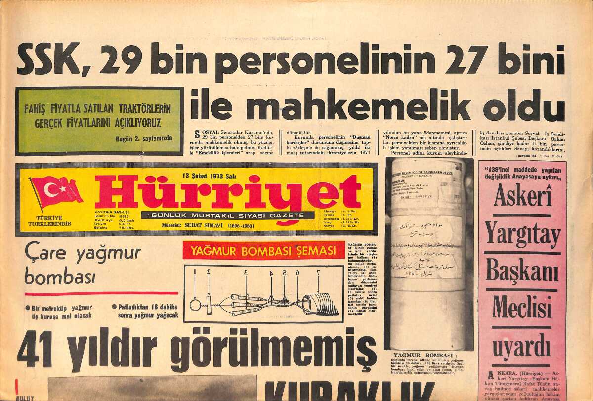 Hürriyet Gazetesi 13 Şubat 1973 - Beşiktaş Çöktü, Fenerbahçe Galip - Askeri Yargıtay Başkanı Meclisi Uyardı GZ158219