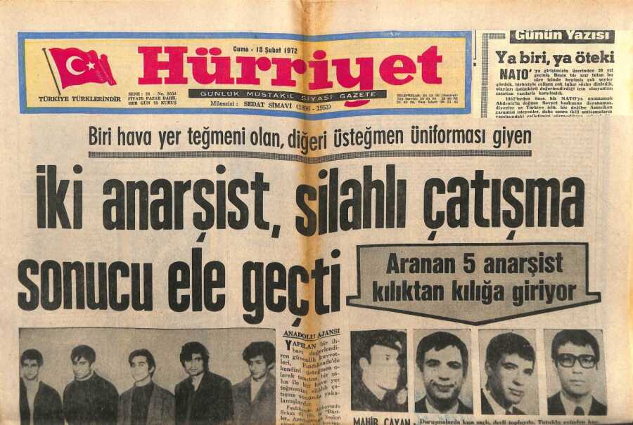 Hürriyet Gazetesi 18 Şubat 1972 - İki Anarşist Ele Geçirildi GZ103464