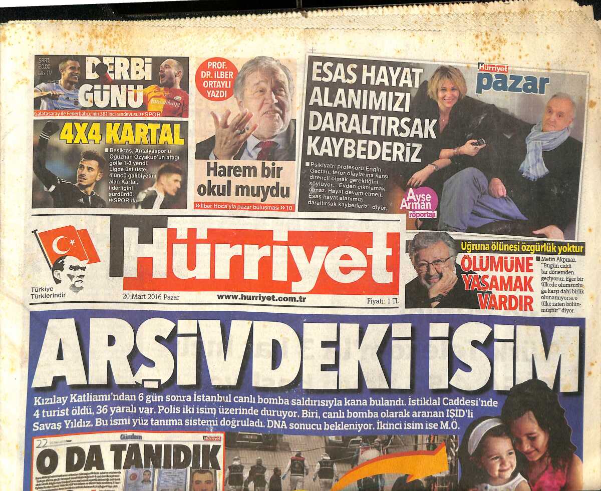 Hürriyet Gazetesi 20 Mart 2016 - İlber Ortaylı Yazdı 'Harem Bir Okul Muydu' - Yunan Adalarına Son Gün Hücumu GZ160150