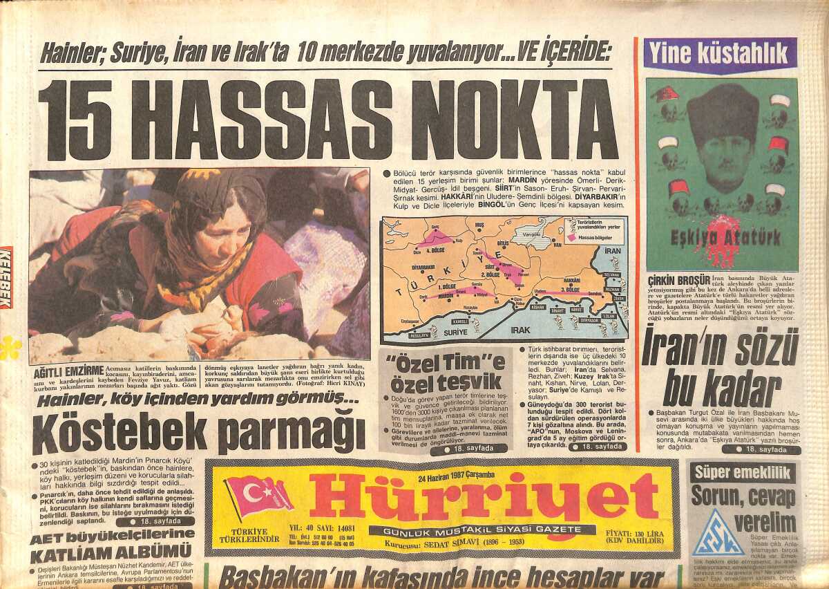Hürriyet Gazetesi 24 Haziran 1987 - ABD'den , Türkiye'nin Toprak Bütünlüğüne Tam Destek - İran'ın Sözü Bu Kadar GZ160181