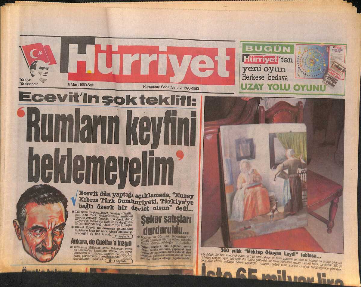 Hürriyet Gazetesi 6 Mart 1990 - Erol Simavi İletişim Ve Eğitim Merkezi Açıldı - Ecevit'in Şok Teklifi GZ134209