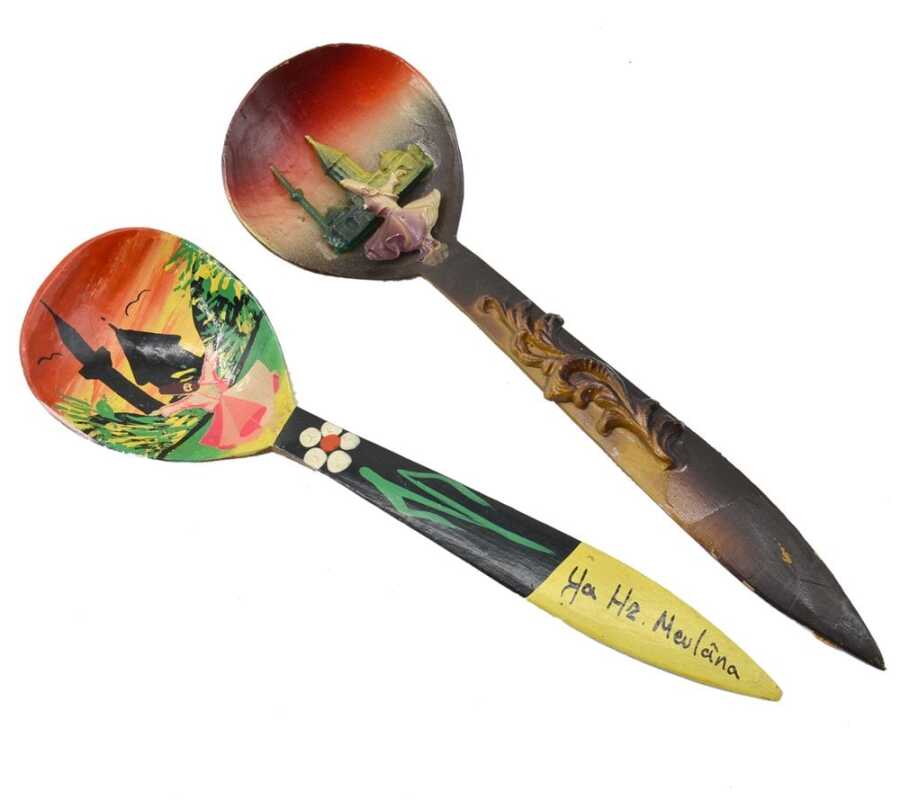Set içerisinde yer alan kaşıkların her birinde Mevlana figürü ve tasavvufi motifler işlenmiş olup, bu detaylar ürünün yalnızca bir mutfak objesi değil; aynı zamanda anlam taşıyan dekoratif bir eser olduğunu göstermektedir. Bu tarz figürlü kaşıklar özellikle 20. yüzyıl ikinci yarısında yaygın olarak üretilmiş ve günümüzde koleksiyon kategorisinde değerlendirilmektedir.