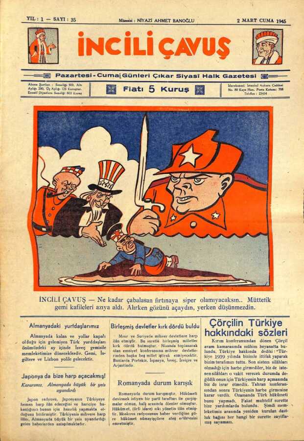 İNCİLİ ÇAVUŞ DERGİSİ 2 Mart 1945 SAYI35 (İlk Baskı Orijinal - Ciltten Çıkma Değildir) NDR66853