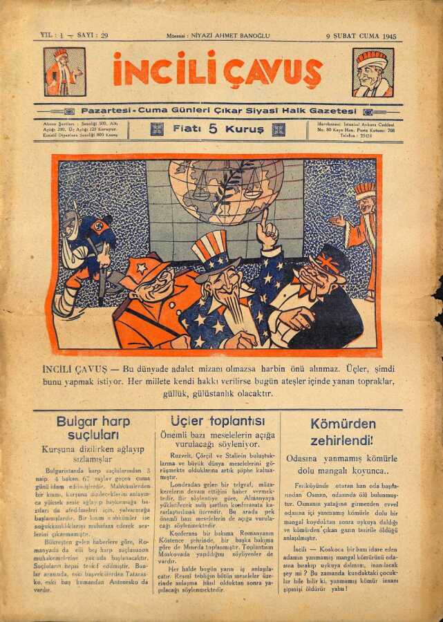 İNCİLİ ÇAVUŞ DERGİSİ 9 Şubat 1945 SAYI29 (İlk Baskı Orijinal - Ciltten Çıkma Değildir) NDR66848