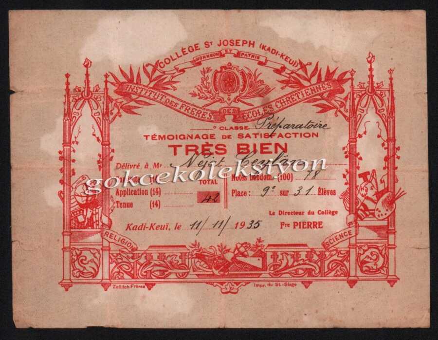 Kadıköy Josep Erkek Lisesi Çalışma Derece Belgesi EFM334
