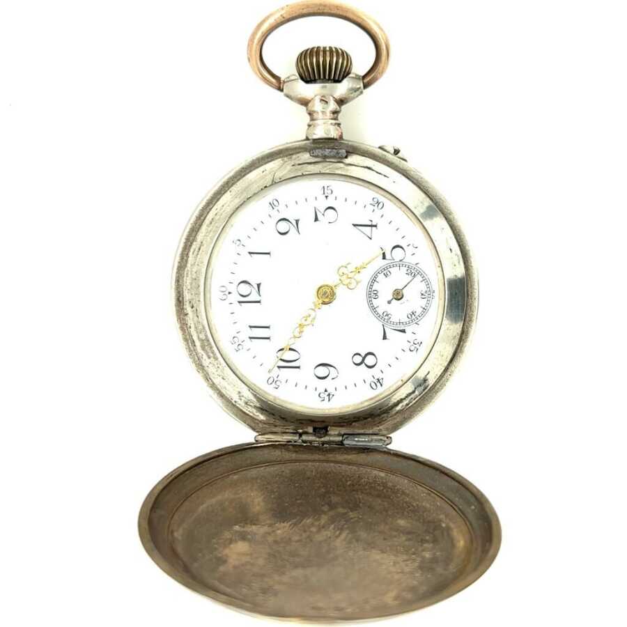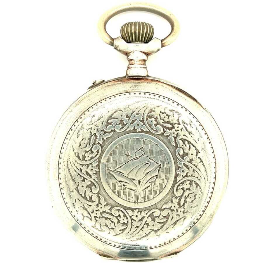 Bu klasik kurmalı gümüş cep saati, 50 mm geniş kasa çapı ile dengeli ve nostaljik bir duruş sunar.