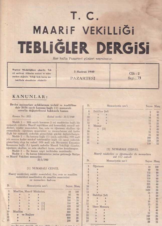 Maarif Vekilliği Tebliğler Dergisi Cilt2 Sayı73 3 Haziran 1940 NDR55981