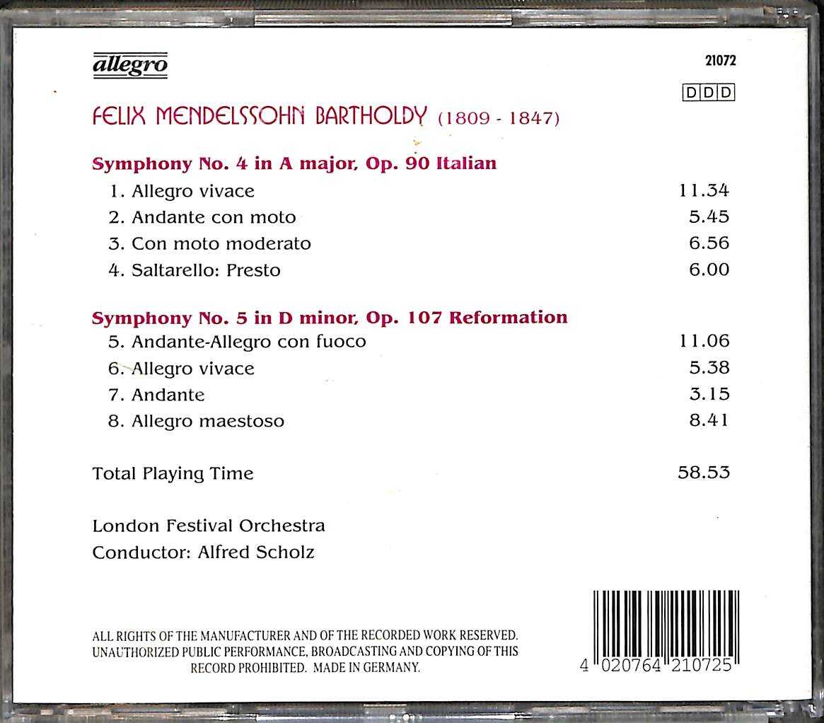 Mendelssohn Symphony NO.4 5 CD (İkinci El) CD4888