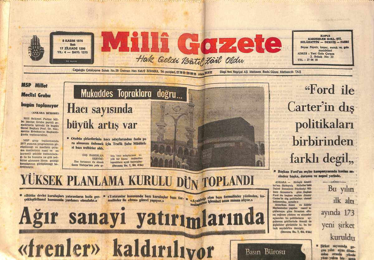 Milli Gazete Gazetesi 9 Kasım 1976 - Yıl Sonuna Kadar 22 Süt Fabrikası Açılacak - Hacı Sayısında Büyük Artış Var GZ160250