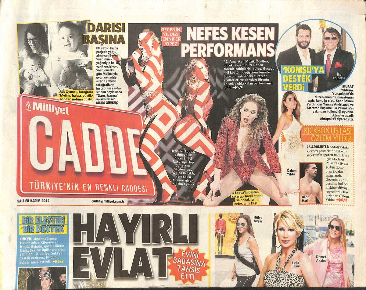 Milliyet Gazetesi Cadde Eki 25 Kasım 2014 - Jennifer Lopez'den Nefes Kesen Performans - Barbie'nin De Selüliti Var GZ137056