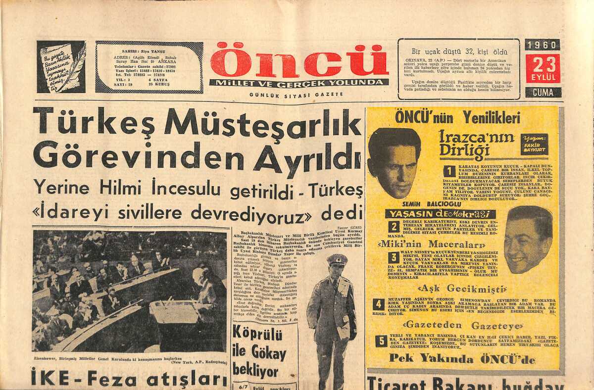 Öncü Gazetesi 23 Eylül 1960 - Türkeş Müsteşarlık Görevinden Ayrıldı - Mamak'taki Tifo Salgını GZ143979