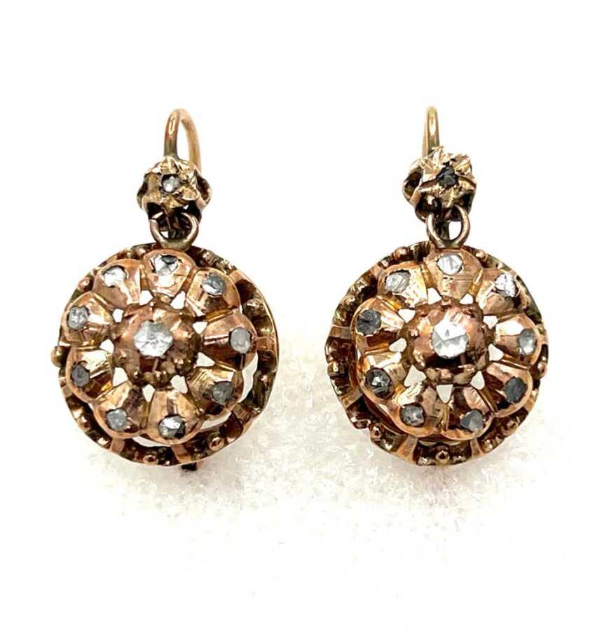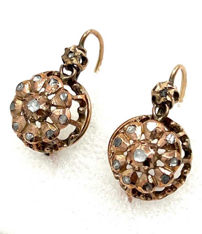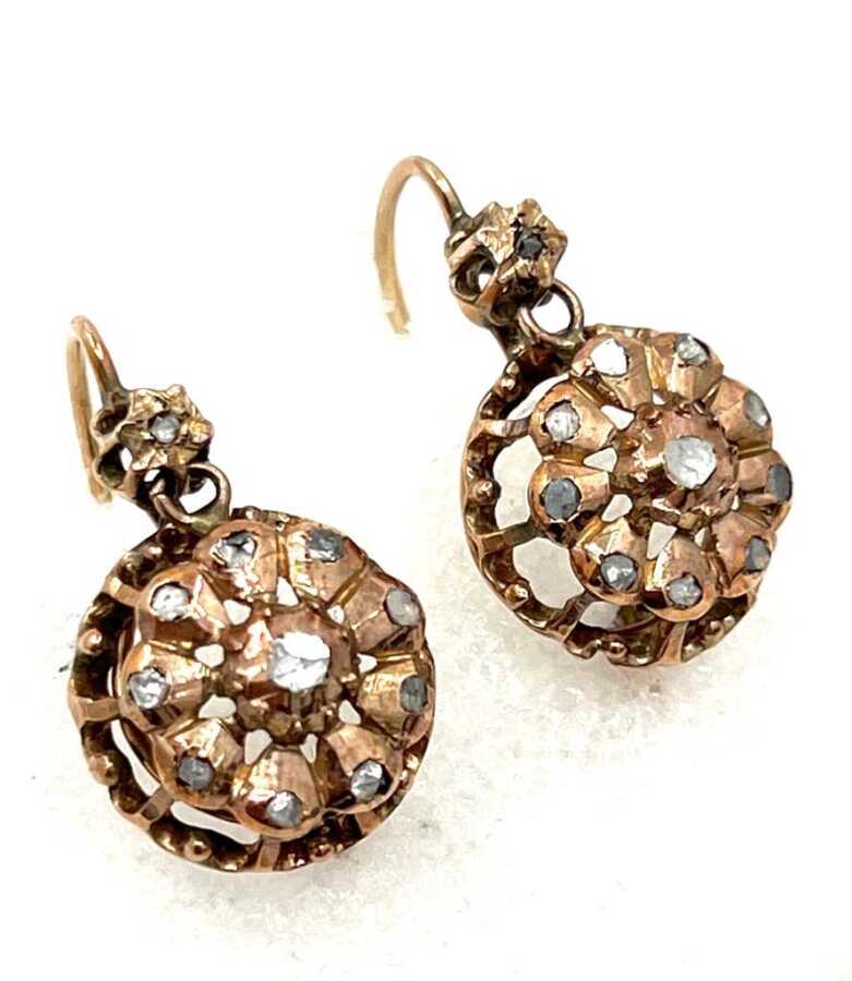 Antika 8 Ayar Elmas Taşlı Gül Küpe ELM332 #5.52