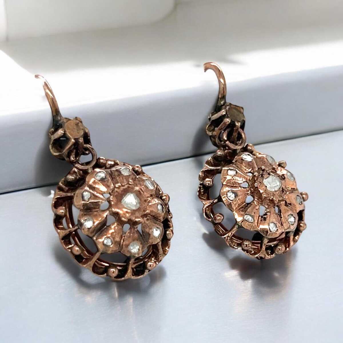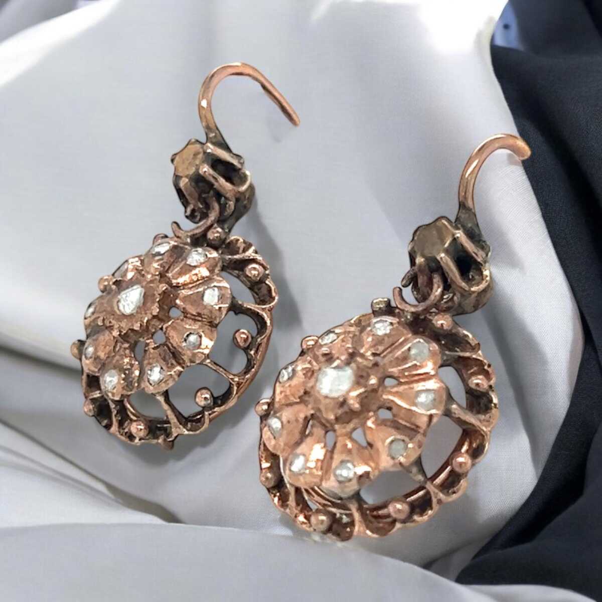 Antika 8 Ayar Elmas Taşlı Gül Küpe ELM332 #5.52