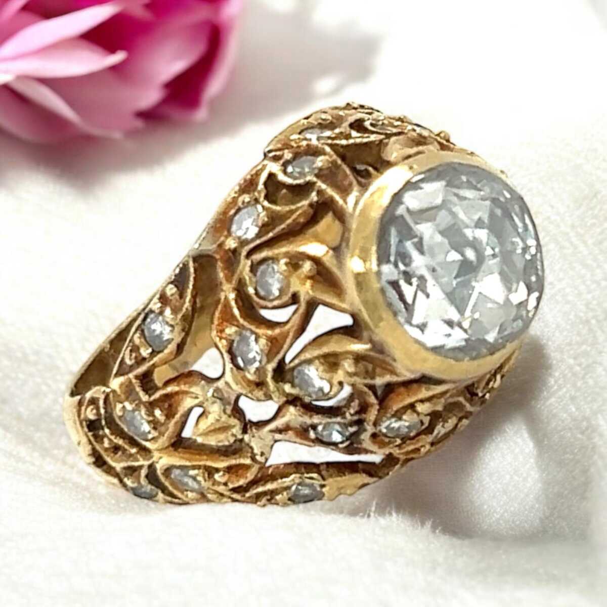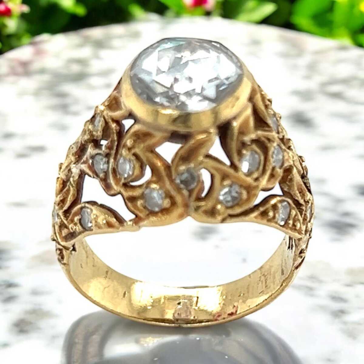 Antika 8 Ayar Elmas Taşlı Gül Yüzük ELM122 #3.02