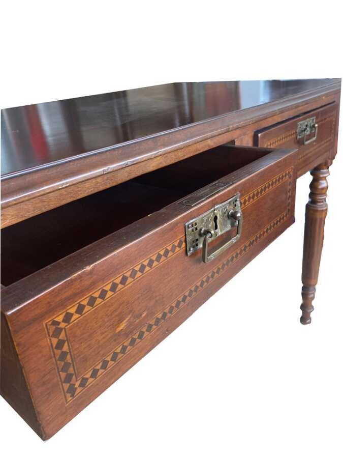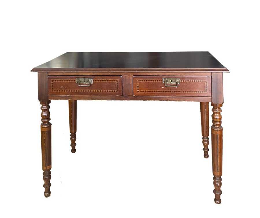Masanın genel yapısında kullanılan ahşap malzeme, zaman içerisinde oluşmuş doğal patina ile birlikte otantik bir görünüm kazanmış; bu da ürüne hem tarihsel derinlik hem de estetik bir değer katmıştır. Yüzey ve form detaylarında döneme özgü işçilik izleri görülmekte olup, bu tür parçaları modern üretimlerden ayıran en önemli unsurların başında gelmektedir.