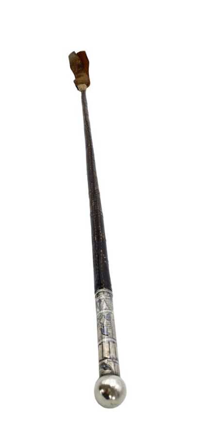 Osmanlı dönemine ait, gümüş üzeri savat (niello) işçilikle süslenmiş kırbaçtır. Bu tür parçalar yalnızca kullanım objesi değil, aynı zamanda dönemin süvari kültürünü, zanaatkârlığını ve estetik anlayışını yansıtan etnografik eserler arasında yer alır.