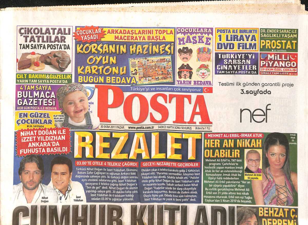 Posta Gazetesi 30 Ekim 2011 - Nihat Doğan ve İzzet Yıldızhan Ankara'da Fuhuşta Basıldı GZ158452