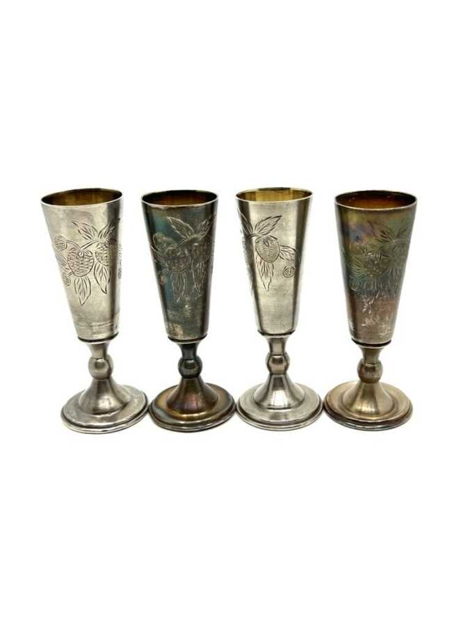 Rus Damgalı Kalem İşi 4 Adet Gümüş Kadeh AOB3833