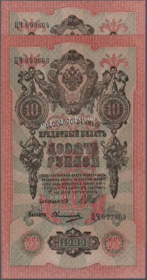 Rusya 10 Ruble 1909 Seri TakipliÇil YKP1648