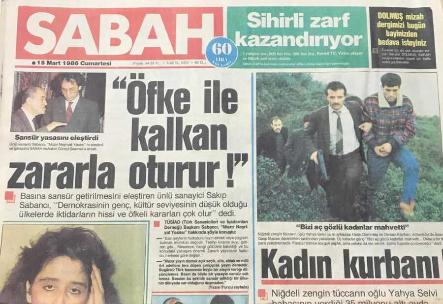 Sabah Gazetesi 15 Mart 1986-Sakıp SabancıÖfke İle Kalkan Zararla Oturur GZ36499