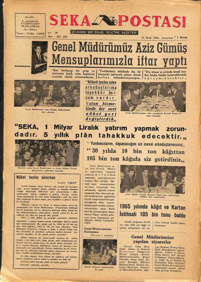 Seka Postası 15 Ocak 1966 - Aziz Gümüş İftar Yaptı, 1965 Yılında Kağıt Ve Karton İstihsali 105 Bin Tonu Buldu GZ79626