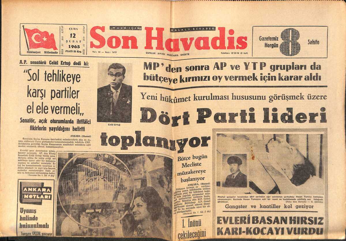 Son Havadis Gazetesi 12 Şubat 1965 - Arif Sami Toker Dün Radyoyu İtham Etti - İtalyan Sanayi Bakanı Gitti GZ158854