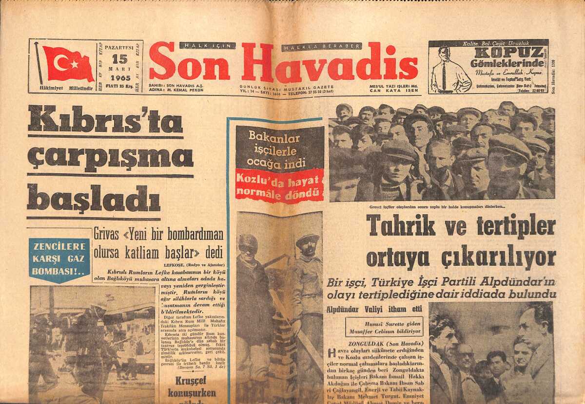 Son Havadis Gazetesi 15 Mart 1965 - TİP Başkanı Yine Sahnede - Kıbrıs'ta Çarpışma Başladı GZ158872