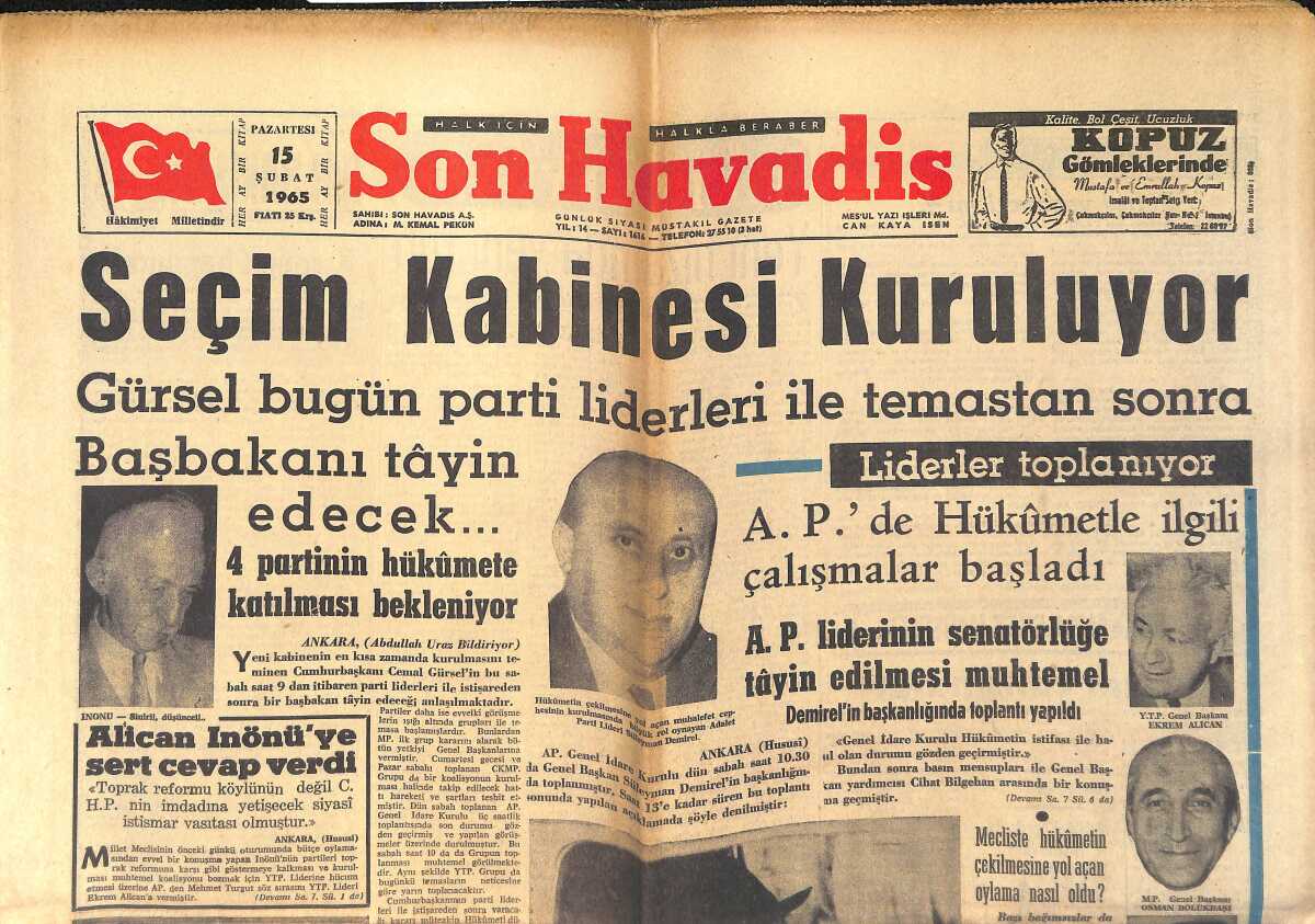 Son Havadis Gazetesi 15 Şubat 1965 - Seçim Kabinesi Kuruluyor - Ege Tütün Piyasasının Tehiri Maksadlı GZ158794