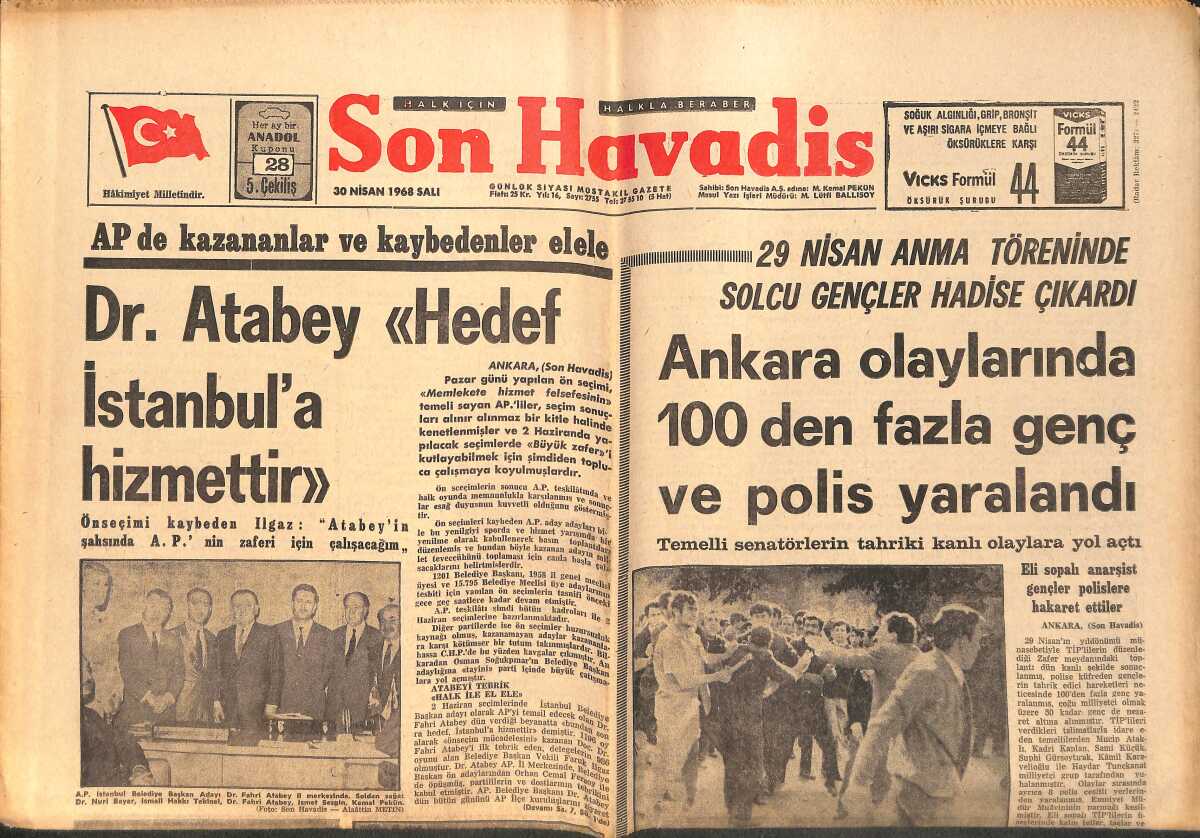 Son Havadis Gazetesi 30 Nisan 1968 - Ankara olaylarında 100'den Fazla Genç Ve Polis Yaralandı GZ158863