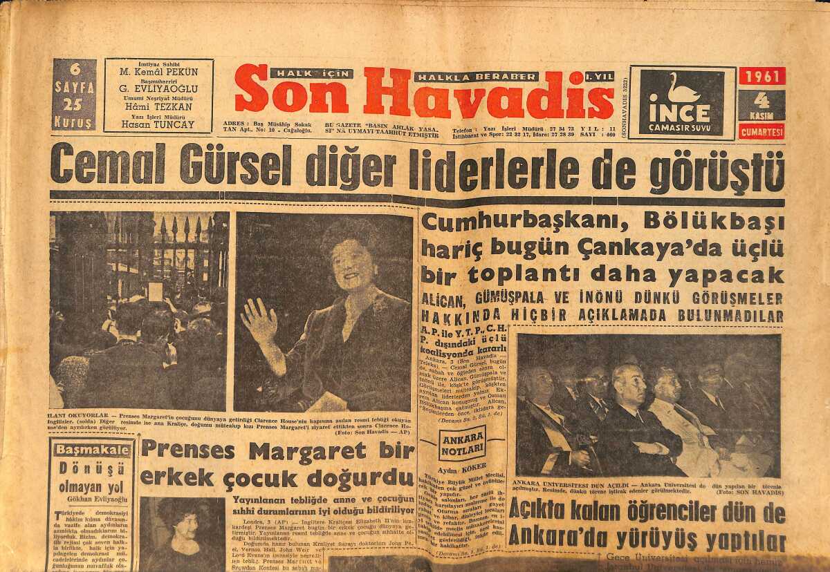 Son Havadis Gazetesi 4 Kasım 1961 - Cemal Gürsel Diğer Liderlerle de Görüştü GZ158842