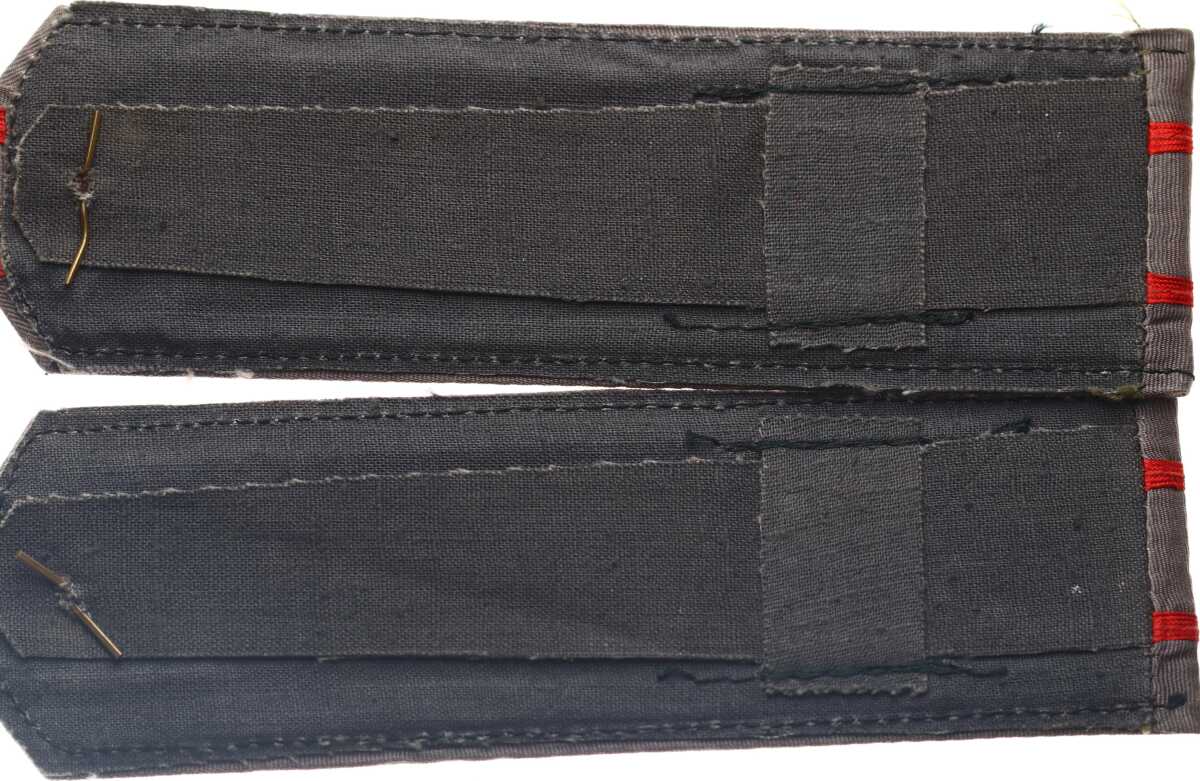 Kurum: Gri (füme) renkli kumaş zemin ve kenarlardaki kırmızı şeritler (piping), bu parçaların Sovyet Milis teşkilatının günlük ve hizmet üniformaları için tasarlandığını gösterir.