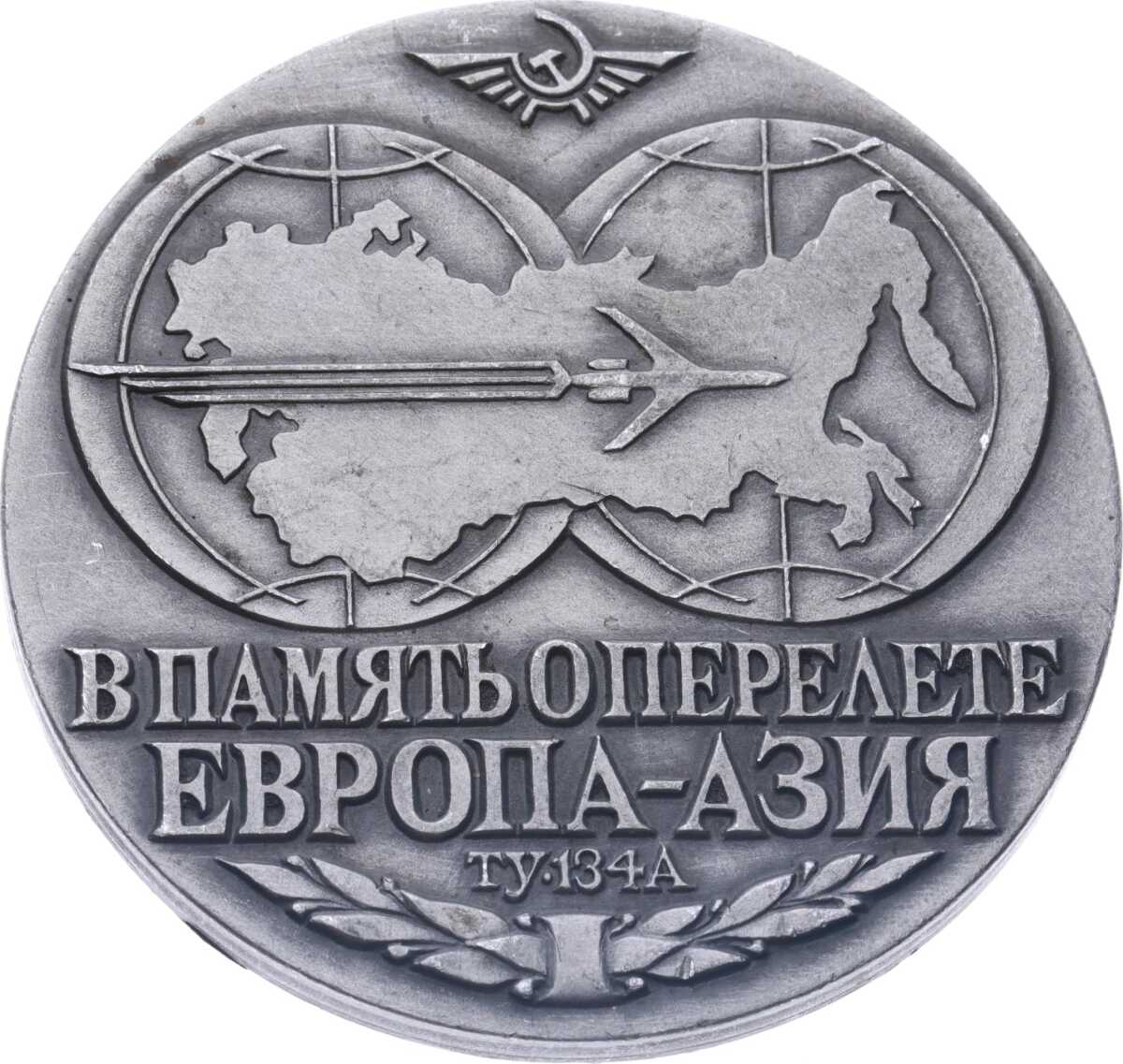 Sovyet Rusya Tupolev Tu-134A Tipi Uçağın Avrupa ile Asya Arasındaki Kıtalararası Uçuşu Anısı Madalyon MVM2173