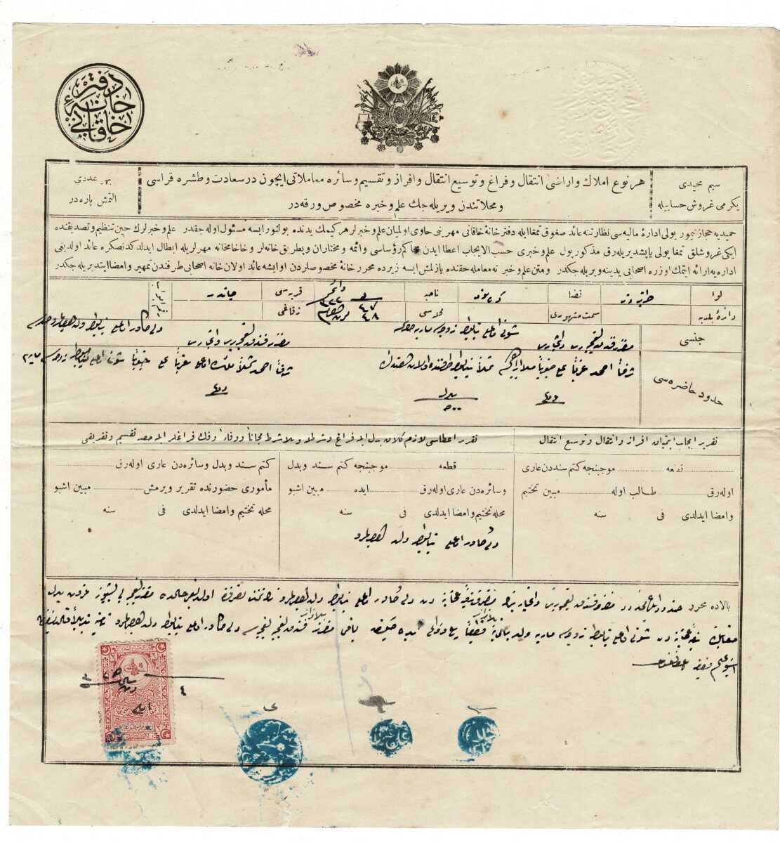Osmanlı İmparatorluğu dönemine ait tapu senetleri ve resmi belgeler, tarihî ve koleksiyon değeri yüksek arşiv materyalleridir. Bu belgeler; arazi, tarla, ev, dükkân gibi taşınmazların mülkiyetini gösteren ve dönemin resmi kayıt sistemi içerisinde düzenlenen evraklardır.