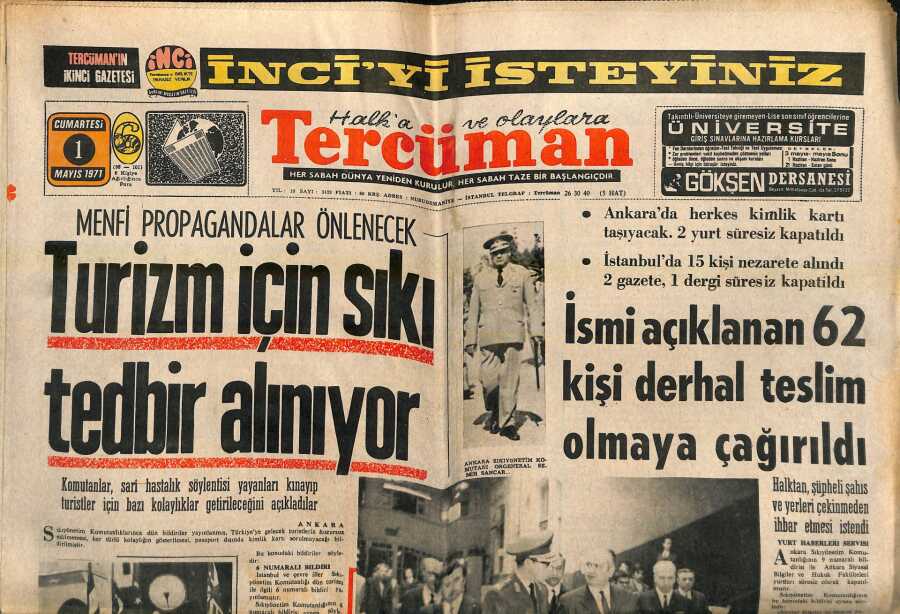 Tercüman Gazetesi 1 Mayıs 1971 - Cento Bakanlar Konseyi Ankarada Çalışmalara Başladı - Turizm İçin Sıkı Tedbir Alınıyor GZ118969