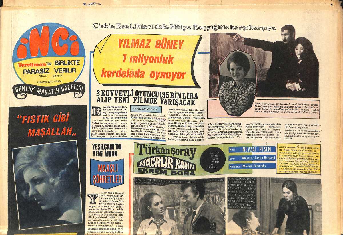 Tercüman Gazetesi İnci Eki 1 Mayıs 1970 - Türkan Şoray Mağrur Kadın Fotoroman - Çirkin Kral Hülya Koçyiğit'le Karşı Karşıya GZ141402