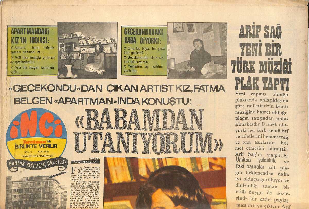 Tercüman Gazetesi İnci Eki 17 Mart 1973 - Fatma Belgen "Babamdan Utanıyorum" - Ediz Hun Ve Eşi Berna Evlerinde GZ144881