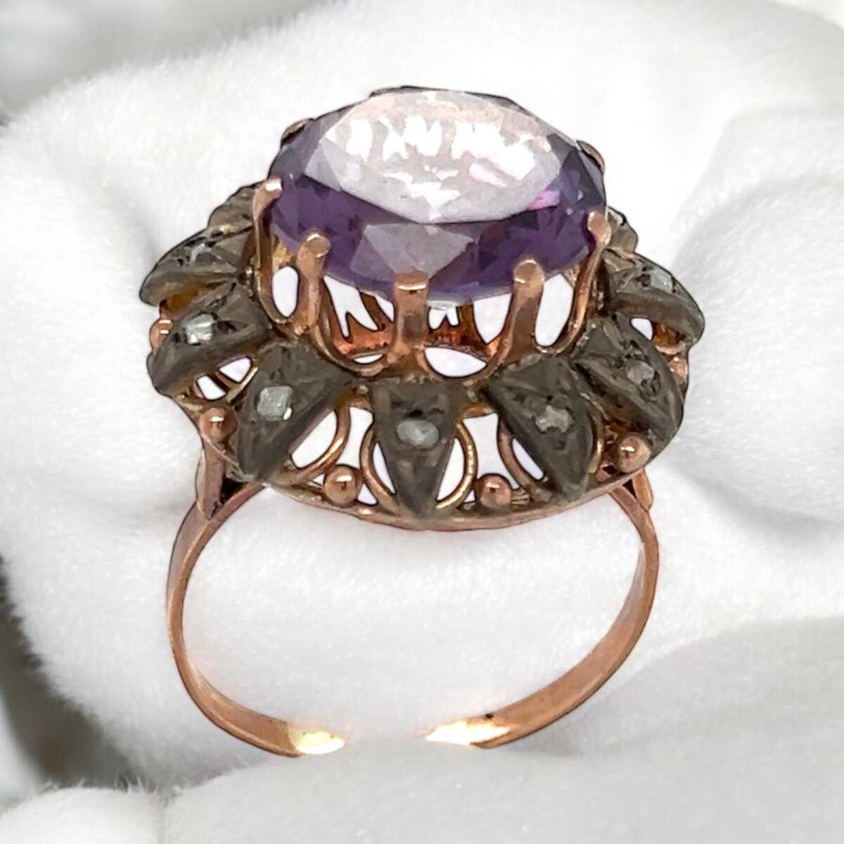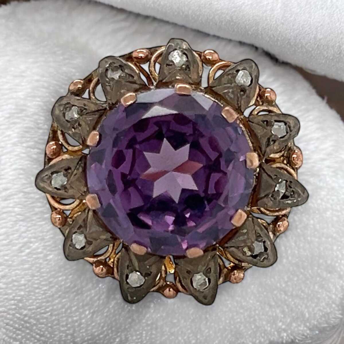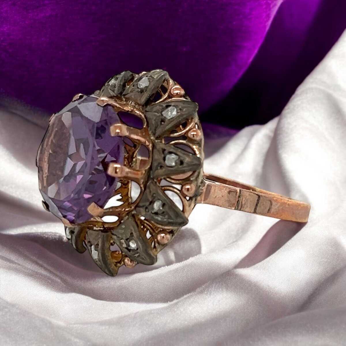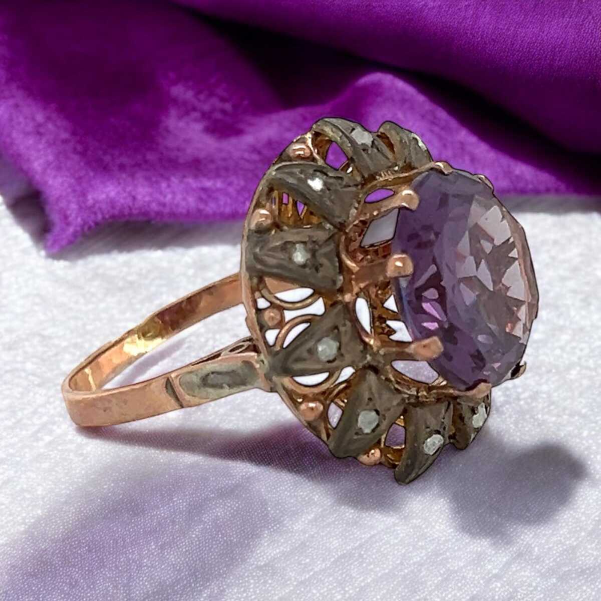 Vintage 10 Ayar Alexander ve Elmas Taşlı Yüzük ELM261 #7.54