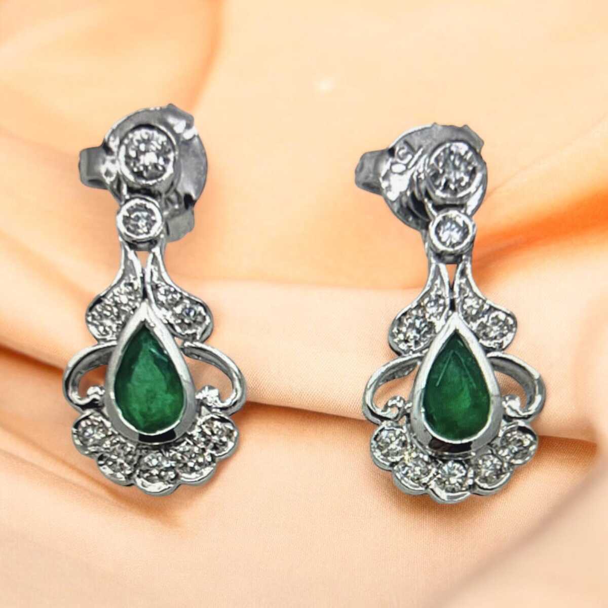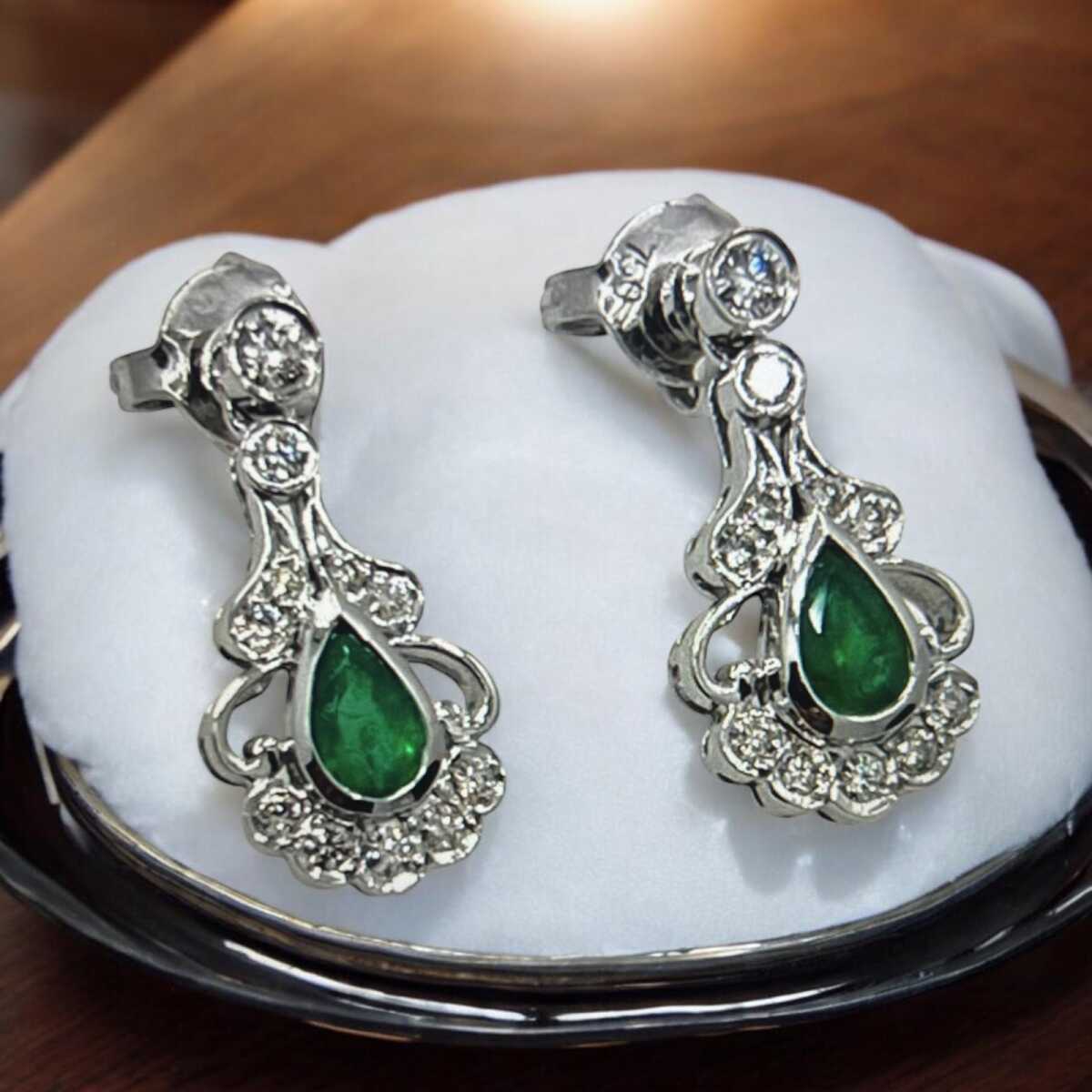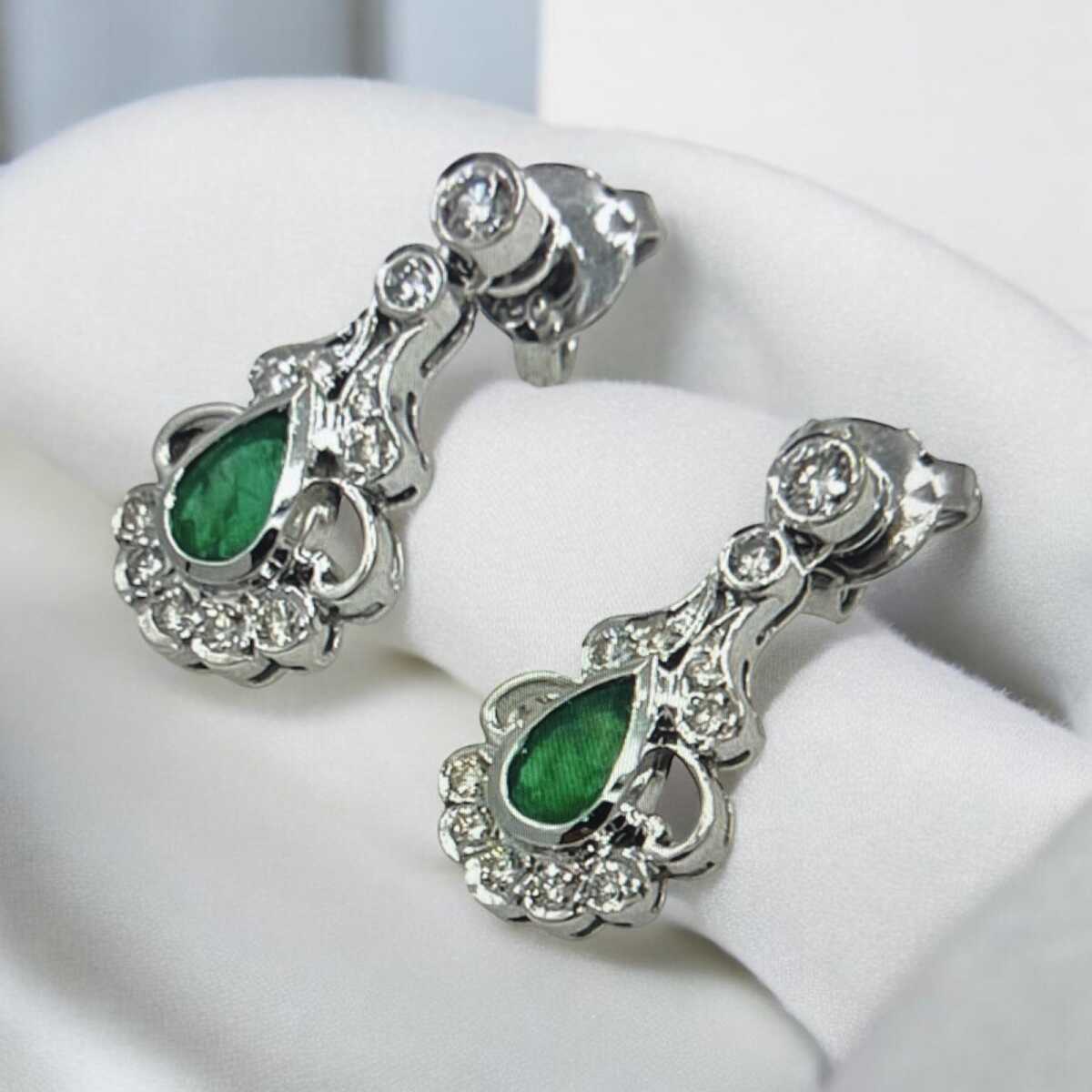 Vintage 18 Ayar Pırlanta Zümrüt Taşlı Küpe ELM069 #12
