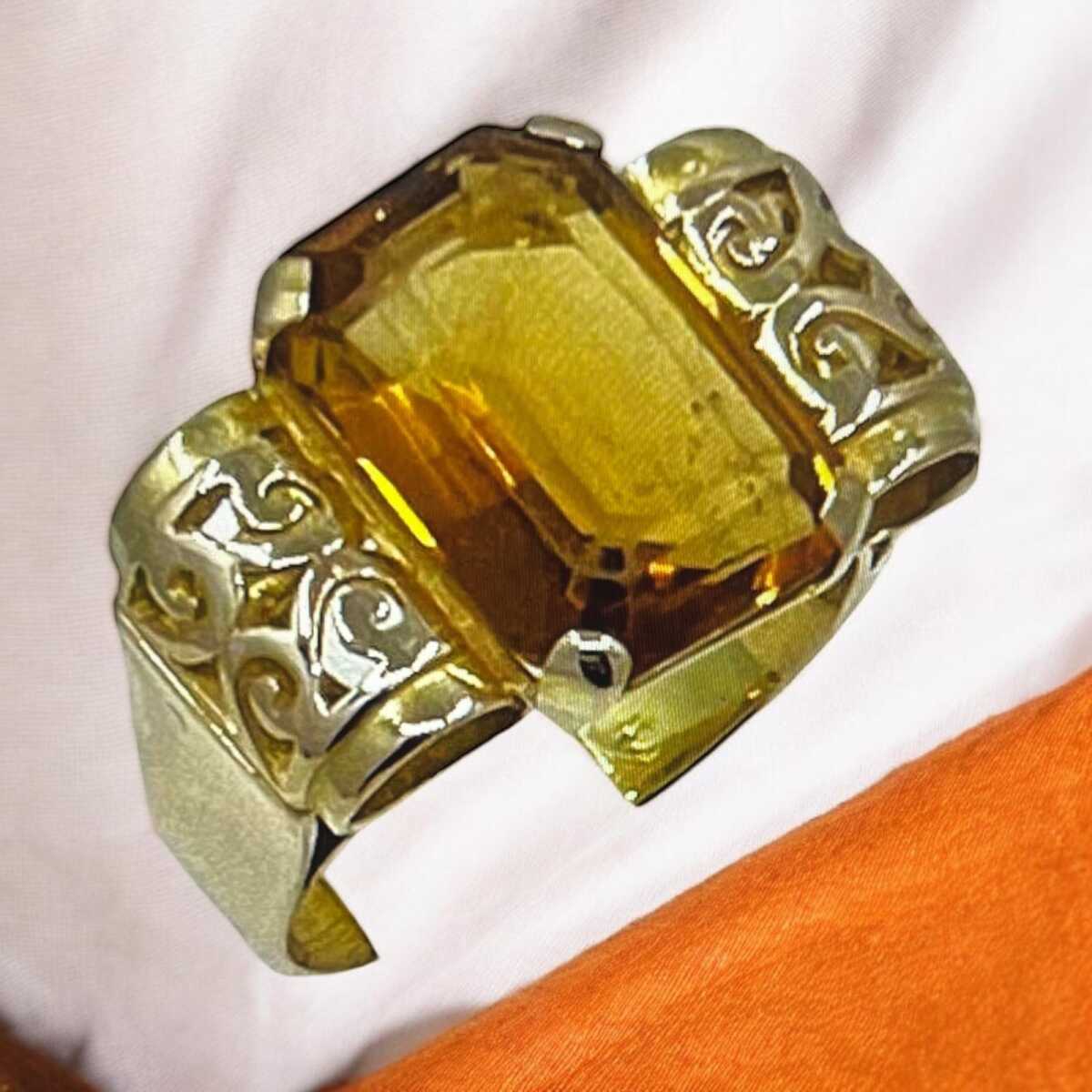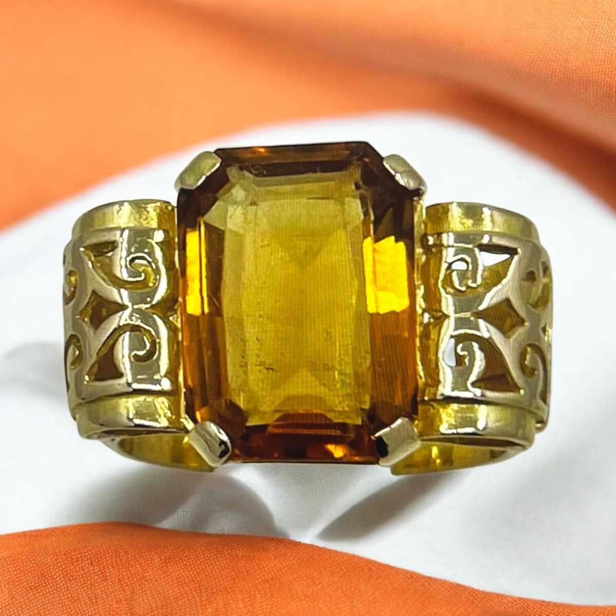 Vintage 18 Ayar Sitrin Taşlı Yüzük ELM188 #10