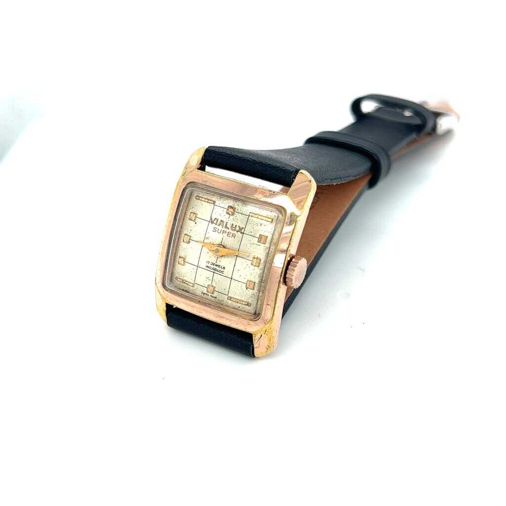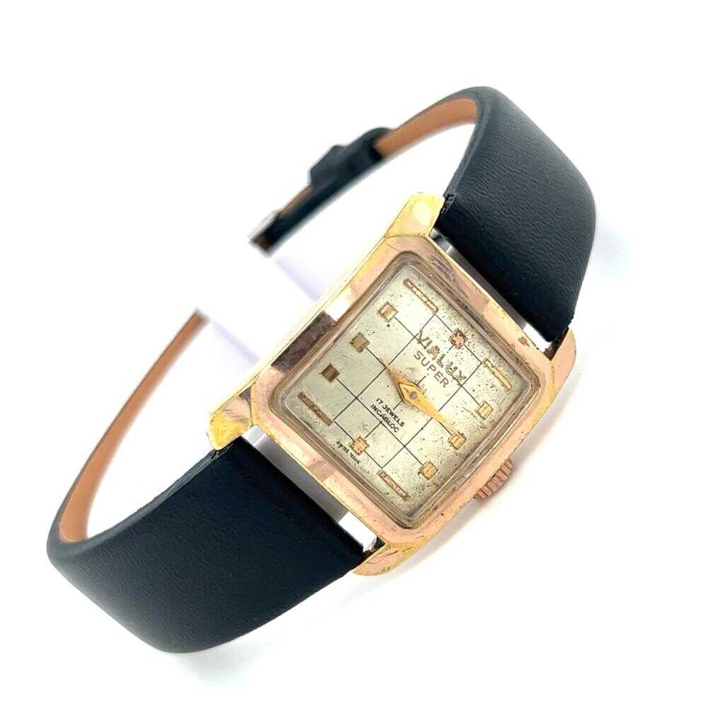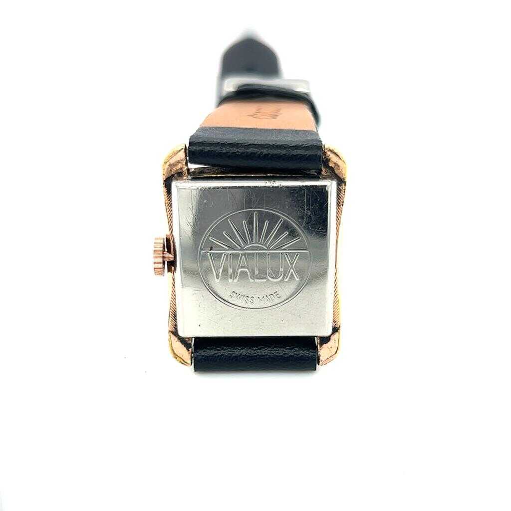 Vintage Vialux marka kurmalı bayan kol saati. Altın kaplama kasasıyla zarif ve klasik bir tasarıma sahiptir. Saatin bakımları yapılmış olup aktif ve sorunsuz çalışır durumdadır. Yeni gerçek deri kordon takılmıştır. Koleksiyonluk ve günlük kullanım için şık bir parçadır.