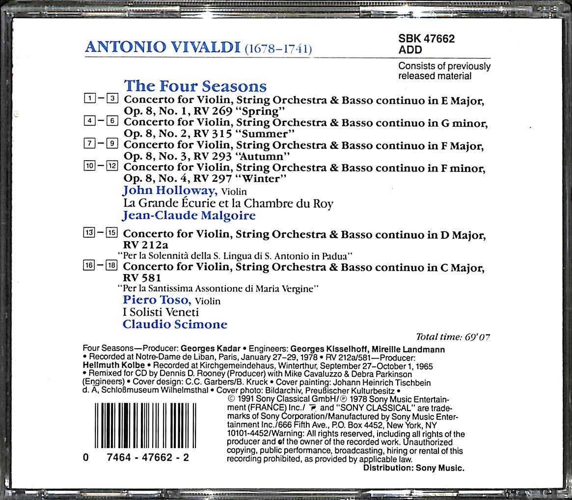 Vivaldi - The Four Seasons • Violin Concerto in D Major, RV 212a • Violin Concerto In C Major RV 581 CD (İkinci El) CD4630