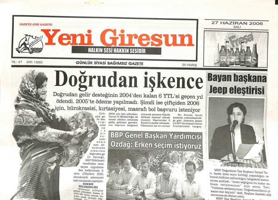 Yeni Giresun Gazetesi 27 Haziran 2006 - Giresunspor Dört Koldan GZ108558