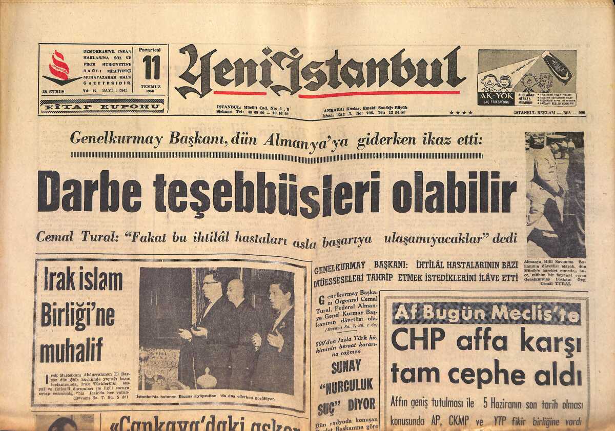Yeni İstanbul Gazetesi 11 Temmuz 1966 - Irak İslam Birliği'ne Muhalif - Alman Dışişleri Bakanı Geldi GZ158738