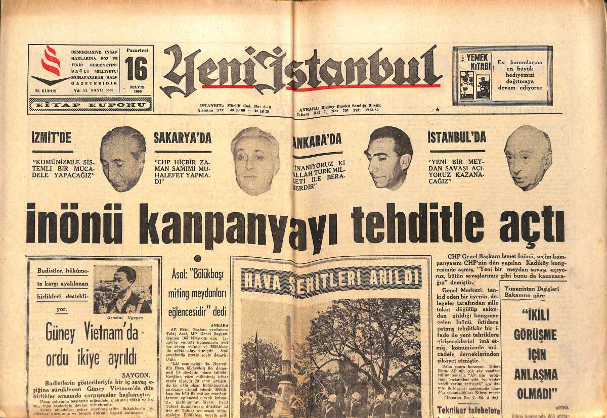 Yeni İstanbul Gazetesi 16 Mayıs 1966 - Öztrak , Elmalı'ya Galiz Sözlerle Hakaret Etmiş - İnönü Kampanyayı Tehditle Açtı GZ158673