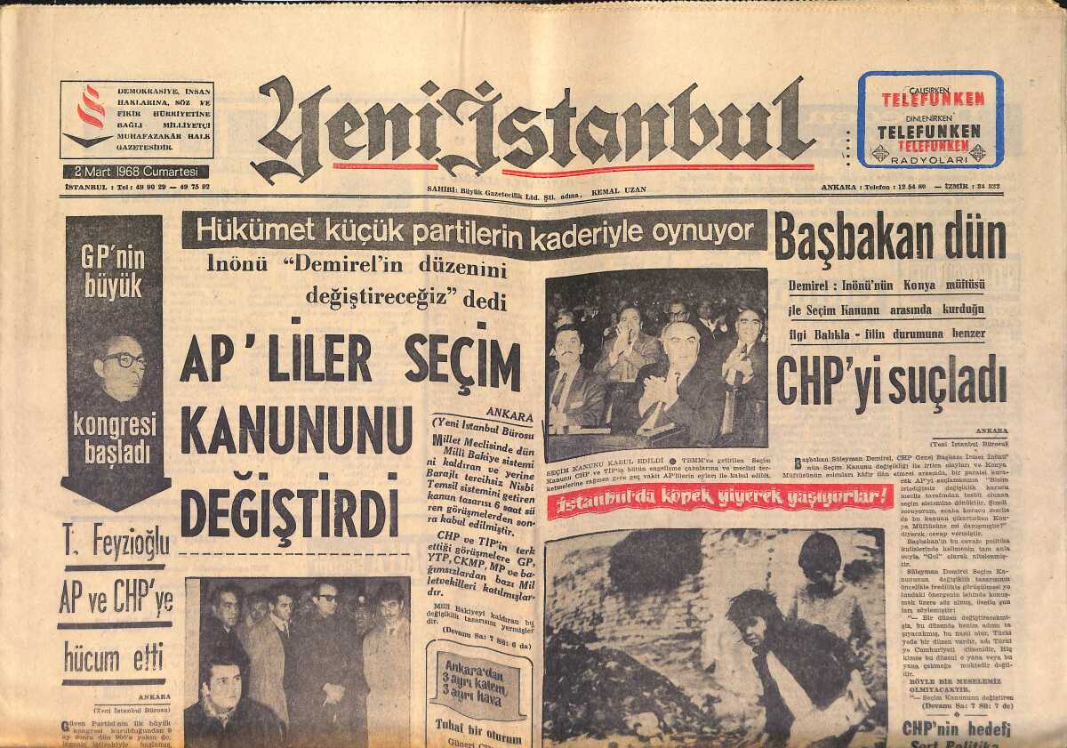 Yeni İstanbul Gazetesi 2 Mart 1968 - Hükümet Küçük Partilerin Kaderiyle Oynuyor - Türk-Yunan Görüşmesi Önce Atina'da Başlıyor GZ158733