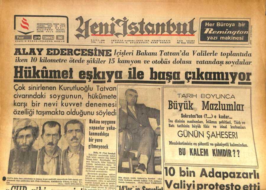 Yeni İstanbul Gazetesi 29 Temmuz 1962 - Hükümet Eşkiya İle Başa Çıkamıyor GZ86527