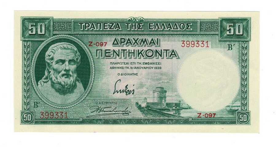 Yunanistan 50 Drahmi 1939 Çil YKP335
