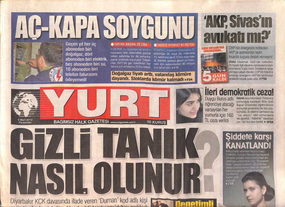 Yurt Gazetesi 8 Mart 2012 - Beren Saat Şiddete Karşı Kanatlandı - Yönetmen Ezel Akay Gözaltına Alındı GZ158644